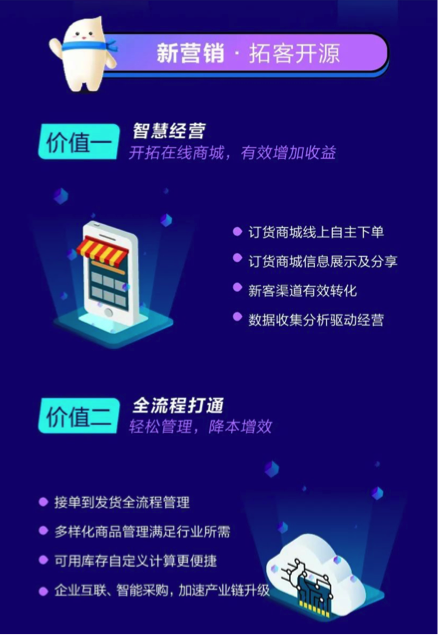 如今,5G時代和大數(shù)據(jù)時代的到來,傳統(tǒng)的營銷模式已無法滿足消費者多變的需求,新一代精斗云助力小微企業(yè)構(gòu)建面向客戶的線上線下服務(wù)能力,,提供2B訂貨商城、2C商城、零售商店商城服務(wù),為企業(yè)打造專屬的線上空間。