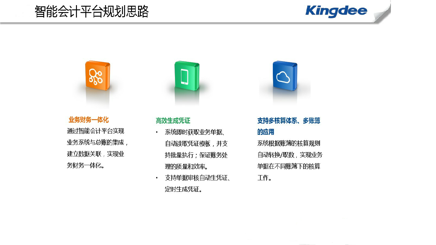 金蝶K/3 Cloud智能會計(jì)平臺能夠按照不同的會計(jì)核算規(guī)則,在不同賬簿中,設(shè)置相應(yīng)的憑證模板,并按照指定的核算規(guī)則自動完成多賬簿的憑證生成工作。這樣,公司的對外法人、稅務(wù)賬、還有老板要看的內(nèi)部管理賬就能夠同步到位,避免大量的重復(fù)工作。并且,金蝶K/3 Cloud智能會計(jì)平臺建立起了業(yè)務(wù)單據(jù)與會計(jì)憑證、賬簿、報表的對應(yīng)關(guān)系,能夠快捷而靈活地實(shí)現(xiàn)報表、賬簿、憑證、業(yè)務(wù)單據(jù)的聯(lián)查。