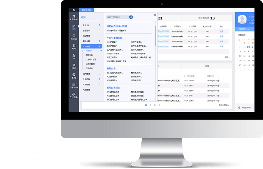 基于強(qiáng)大的智能會計(jì)平臺,金蝶K/3 Cloud還可以借助精細(xì)化成本核算支撐多工廠多產(chǎn)品的成本管理。它能:1)區(qū)分采購、銷售、管理、研發(fā)、輔助生產(chǎn)、基本六大類成本中心,與部門實(shí)現(xiàn)多對一的關(guān)系,細(xì)化責(zé)任成本考核;2)按產(chǎn)品類型劃分產(chǎn)品組,明確費(fèi)用承擔(dān)的產(chǎn)品組,準(zhǔn)確核算主聯(lián)副產(chǎn)品、等級品及其他產(chǎn)品成本;3)支持同一核算體系下所有核算組織按不同會計(jì)政策統(tǒng)一引入成本數(shù)據(jù)。