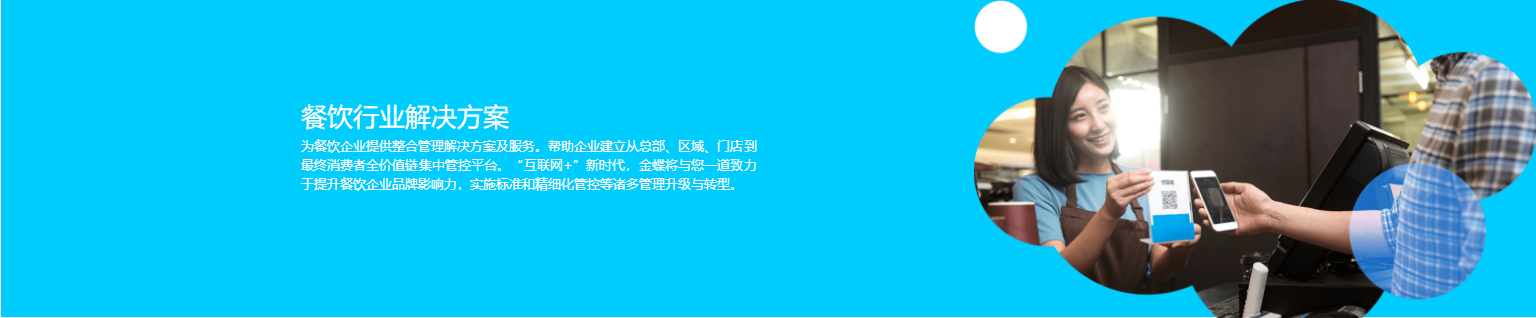 為餐飲企業(yè)提供整合管理解決方案及服務(wù)。幫助企業(yè)建立從總部、區(qū)域、門店到最終消費(fèi)者全價值鏈集中管控平臺?!盎ヂ?lián)網(wǎng)+”新時代,金蝶將與您一道致力于提升餐飲企業(yè)品牌影響力,實(shí)施標(biāo)準(zhǔn)和精細(xì)化管控等諸多管理升級與轉(zhuǎn)型。