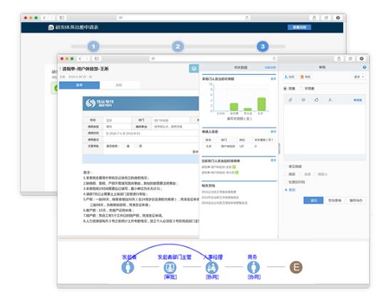 流程隨時(shí)申請,移動快速審批,可加簽、會簽、知會和回退等,使移動審批更靈活方便