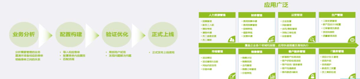協(xié)同標(biāo)準(zhǔn)業(yè)務(wù),領(lǐng)域擴(kuò)展應(yīng)用。領(lǐng)導(dǎo)審批100%支持;全員應(yīng)用,90%覆蓋;移動業(yè)務(wù)靈活封裝。