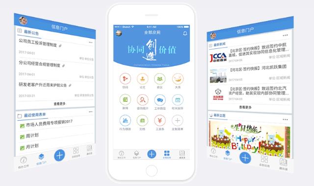 組織及個(gè)人的移動入口,新聞,公告,日程事件,時(shí)間安排,離線文檔,第三方業(yè)務(wù)集成