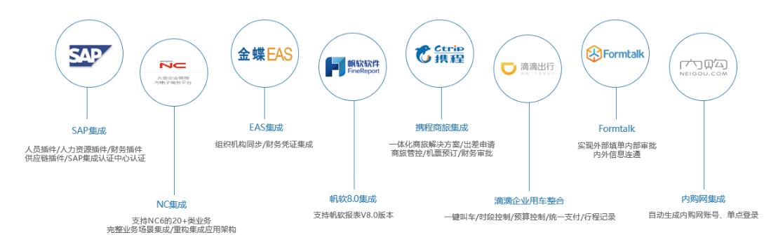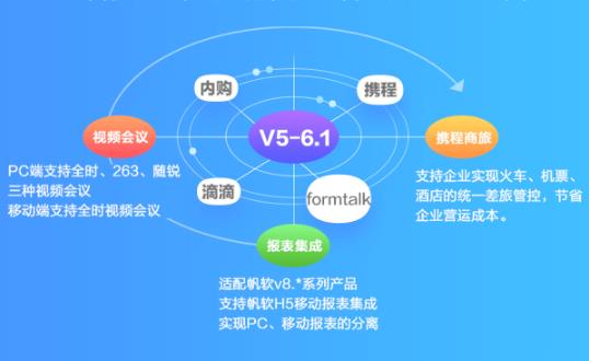 完善協(xié)同+集成應(yīng)用,擴(kuò)大客戶需求適應(yīng)范圍。視頻會議:全時(shí)、263、隨銳;報(bào)表集成:適配帆軟v8.*系列產(chǎn)品;攜程商旅:支持企業(yè)實(shí)現(xiàn)火車、機(jī)票、酒店的統(tǒng)一差旅管控,節(jié)省企業(yè)營運(yùn)成本。
